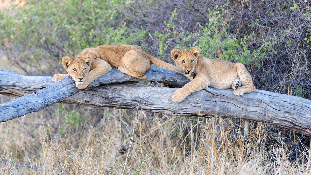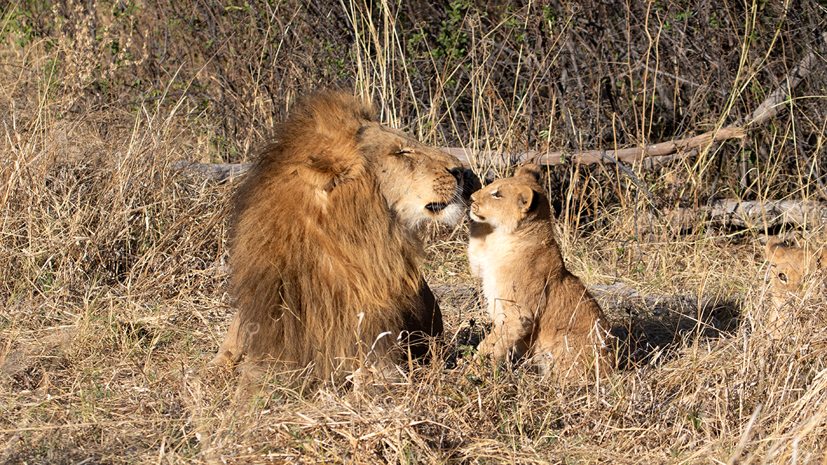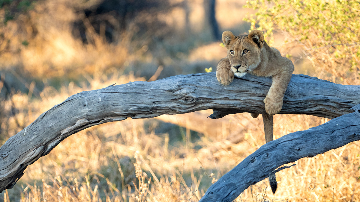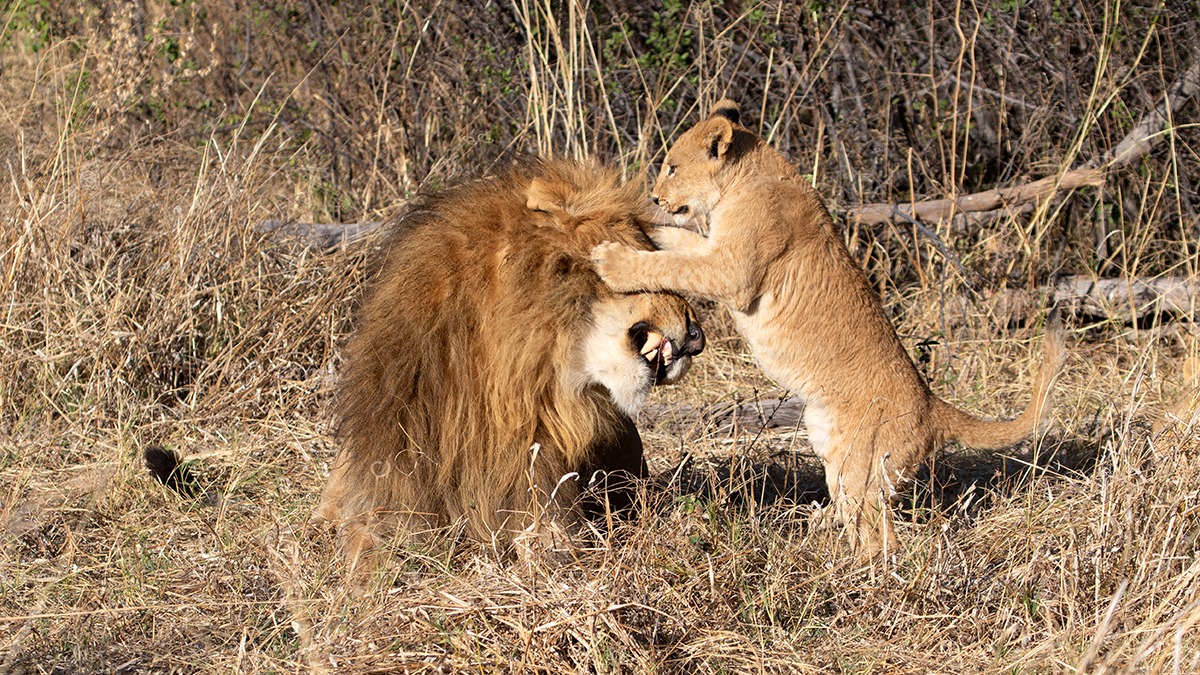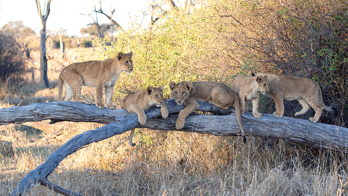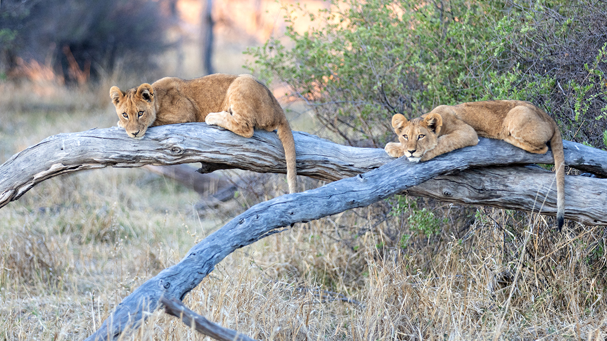 Die Baumskelette der abgestorbenen aufrechtstehenden Kameldornbäumen verleihen der Landschaft heute besonders bei Sonnenauf- und -untergang eine fast dramatische, surreale Atmosphäre. Derzeit beherbergt das Gebiet kaum mehr lebende Bäume, so dass das Waldstück überwiegend von Grasfressern wie Zebras, Gnus oder Impalas bevölkert wird. Dabei bietet es einem dreizehnköpfigen Löwenrudel ausreichend Nahrung, um insgesamt sieben cubs erfolgreich groß zu ziehen, die uns bestes Entertainment bieten. Die cubs nutzen die Äste der toten Bäume gerne als Spielplatz und Ausguck, wenn die Mütter auf Jagd gehen. Die fünf Weibchen des Rudels überlassen das Babysitting dabei dem Männchen. Big Daddy ist keine schlechte Nanny, aber genervt und überfordert vom nicht zu bändigenden Nachwuchs, der ihn kaum ein Auge zu machen lässt - living the Dadventure life :-)!