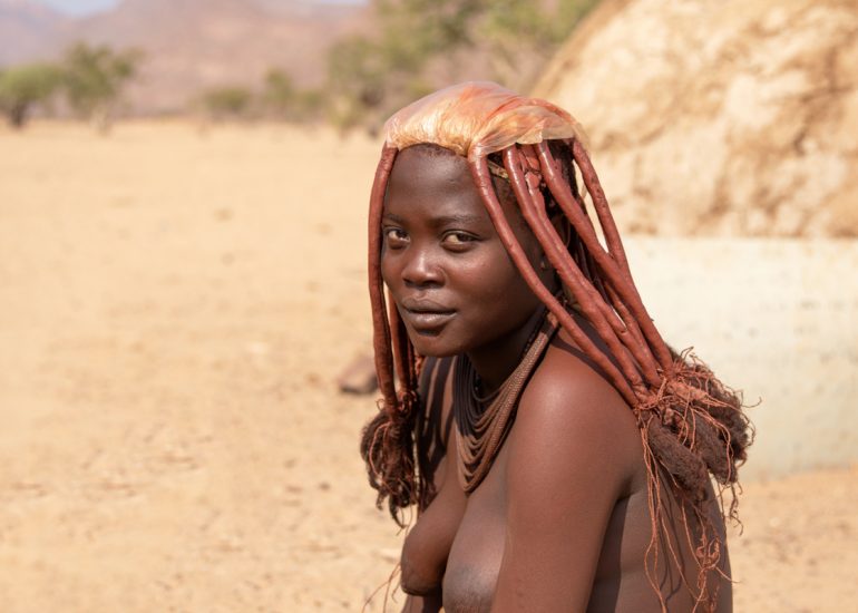 In der Pubertät binden die Himbamädchen ihre Zöpfe nach vorne - Kaokoland