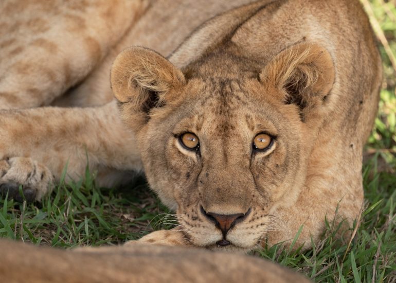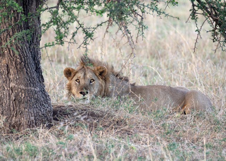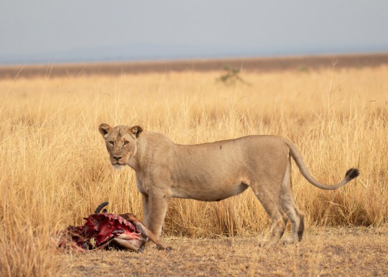 Löwe mit Zebra-Kill - Ndutu. NCA