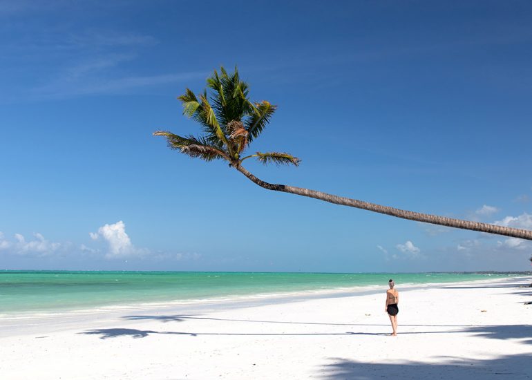 Der Strand in Jambiani auf Sansibar ist ein typischer Ostküstenstrand. Das Meer ist hier wegen des vorgelagerten Riffs extrem flach, so dass man bei Ebbe mehrere hundert Meter ins Meer laufen kann. Wenn sich der türkisfarbene Indische Ozean zurückzieht, verläuft die „Hauptverkehrsstraße“ entlang des Strandes. Das Meeresrauschen wird dann ab und an durch eine Fahrradklingel, ein paar Fischer, die ihre Boote reparieren oder das Geschnatter von Seegrasfrauen ersetzt. Im flachen Gewässer wird Seegras angebaut und am Strand zum Trocknen aufgehangen, um daraus Seife herzustellen. Das Business ist fest in Frauenhand und die Arbeitskluft besteht aus bunten Kangas.