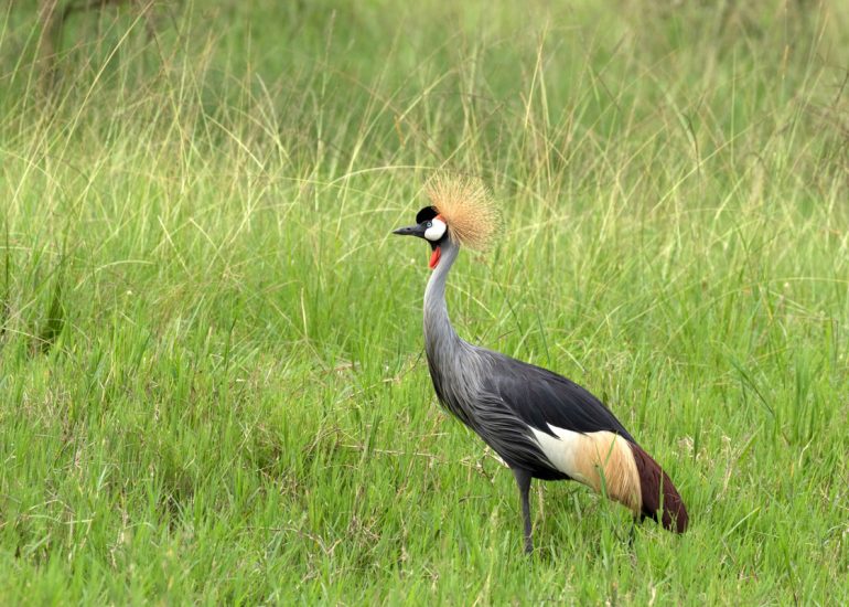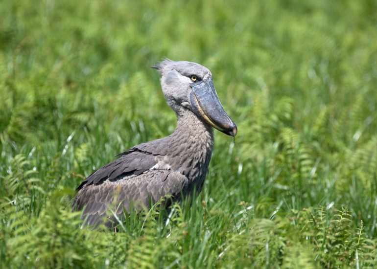 Ugandas Artenreichtum ist einzigartig. Neben Schimpansen, Löwen, Elefanten oder Gorillas begeistert vor allem Ugandas Vogelwelt. 1065 verschiedene Vogelarten existieren in diesem Land, dessen Fläche in etwa der Großbritanniens entspricht. Ugandas Star unter den Vögeln ist der Schuhschnabel, ein 1,20 Meter großes Faktotum, was sehr an einen fliegenden Dinosaurier erinnert.