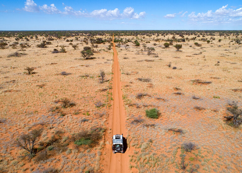 Mabuasehube bedeutet in der Sprache der San Platz des roten Sandes. Die mit Büschen und einzelnen Bäumen durchsetzte Landschaft beherbergt Gras- und Salzpfannen sowie bis zu 30m hohe Dünen, deren Sand wegen seines hohen Eisenoxidgehalts rot ist. „Mabua“ ist das östlichste Gebiet des Kgalagadi Transfrontier Nationalpark im tiefen Süden Botswanas und gilt als das einsamste Gebiet im grenzübergreifenden Nationalpark. Es erfordert, egal, ob man sich von Maun (Botswana), Johannesburg (Südafrika) oder Windhoek (Namibia) nähert, ein paar Tage Anreise über teils tiefsandige Pisten, um nach Mabua zu gelangen. Seine Abgeschiedenheit, Weite und Einsamkeit und das völlige Fehlen jeglicher Versorgungsmöglichkeiten vermitteln dem Gebiet ein Wildnisgefühl, das seinesgleichen sucht.