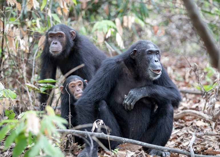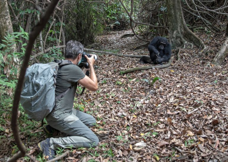„Don’t worry!“ beruhigt uns Raymond als das Alphamännchen „Primus“ sich seinen Weg zwischen uns hindurch bahnt. Wir sind auf Schimpansenpirsch in den Mahale Mountains und endlich sind unsere Versuche von Erfolg gekrönt. Ein gut hundert Höhenmeter steiler Aufstieg liegt hinter uns. Klettern, warten, lauschen, weiterklettern, wieder warten, wieder lauschen und wieder weiterklettern. Als wir nach drei Stunden immer noch nichts hören und fast schon aufgeben wollen, vernehmen wir doch noch das hysterische Geschrei der Tiere. Raymond nötigt uns zum Sprint und dann sind wir plötzlich umzingelt von Schimpansen.