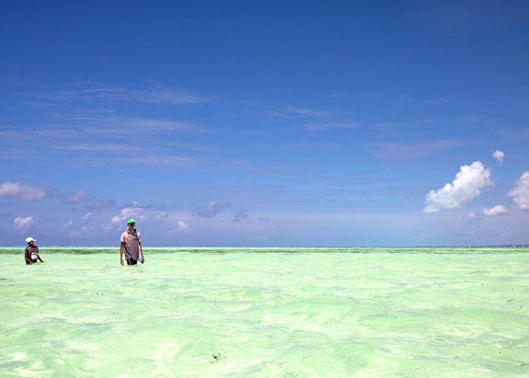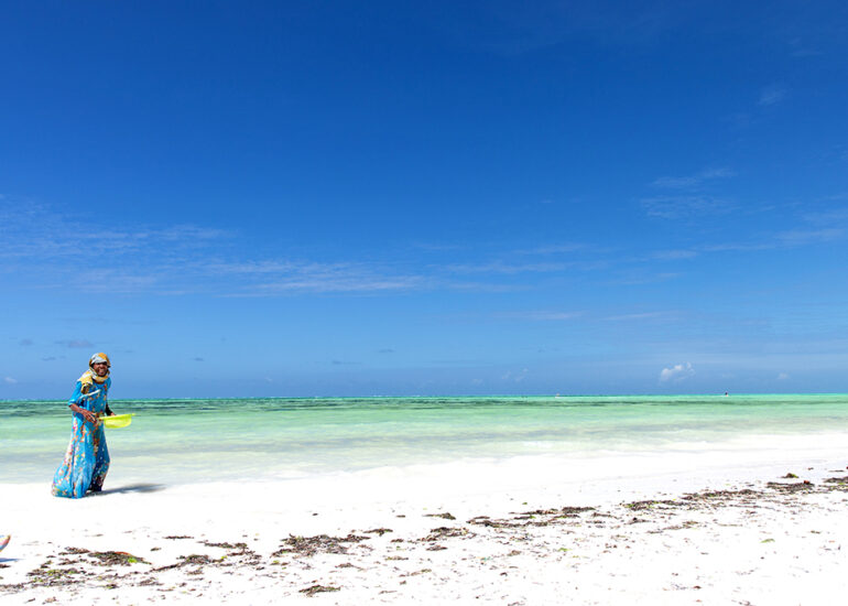 Die Michamvi Halbinsel liegt im Osten von Sansibar und kann bei Ebbe und nur zwei Kilometern Breite per Spaziergang am Strand gemütlich umrundet werden. Vom Dörfchen Afya am nördlichen Zipfel der Halbinsel bieten sich grandiose Sonnenauf- und -untergänge über der Chwaka Bay. Es gibt hier kaum Wind, was untypisch für Sansibars Ostküste ist. Das Meer schillert trotzdem türkis, der Sand ist weiß wie Vongole und das Leben tulia sana.
