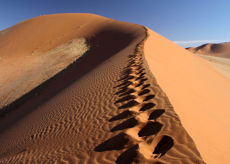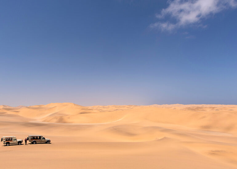 Bei der Reise widmen wir uns im Sossusvleigebiet der Namibwüste und in den Erongobergen Namibias atemberaubenden Landschaften. Wir begeben uns im wildreichen Namutonigebiet des Etosha-Nationalpark auf Safari und im Damaraland auf die Suche nach seltenen Wüstenelefanten. In Swakopmund werden wir auf den Pfaden deutscher Kolonialgeschichte wandeln und im Dorob Nationalpark uns den kleinen Tieren und Schönheiten der Wüste widmen.