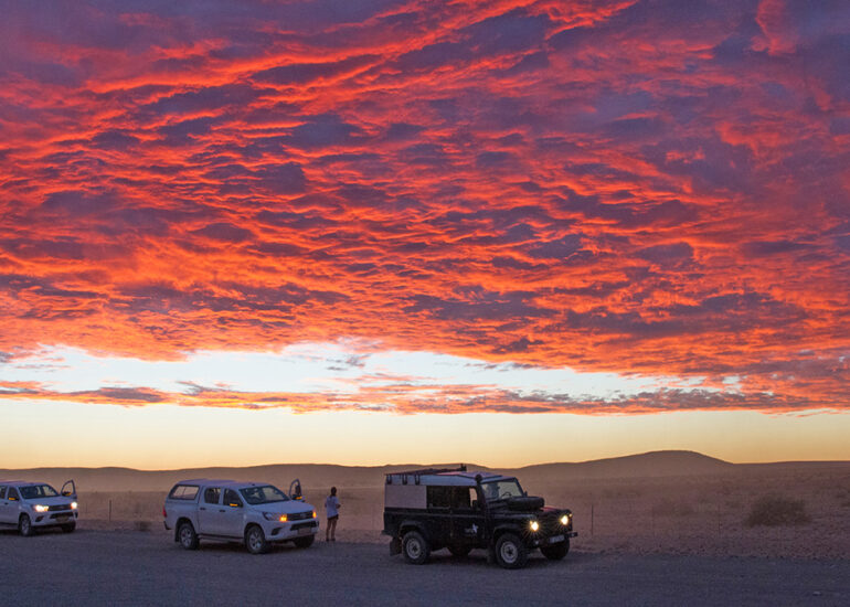 Die Reiserouten haben wir dabei so konzipiert, dass ausreichend Zeit vor Ort ist, um die jeweiligen Sehenswürdigkeiten und Gebiete entspannt und in ruhiger Atmosphäre zu genießen bzw. ausgiebig auf Safari zu gehen (jeweils 2 bis 3 Übernachtungen vor Ort – Kein "Rush in, rush out!" - Weniger ist mehr!). Die 4x4 Fahrzeuge werden dabei mit Ausnahme unseres Landys bei einem seriösen Autovermieter vor Ort angemietet. Sie sind in sehr gutem Zustand, sind perfekt an die Begebenheiten vor Ort angepasst und verfügen über einen 24-h Backupservice. Die Autos sind für alle Fälle mit einfachen Funkgeräten miteinander verbunden. Dennoch sollte man als Teilnehmer keine Probleme mit Staub, Wellblechpisten, Schlaglöchern oder Tiefsandpassagen haben :-).