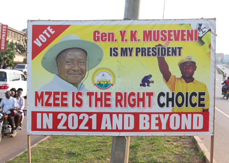 Yoweri Museveni regiert Uganda seit 34 Jahren und ist damit eines der am längsten amtierenden Staatsoberhäupter der Welt. Musevenis Verdienst ist sicherlich, dass er das Land befriedet hat. Die meisten Ugander kennen nur Museveni als Präsident und erinnern sich demzufolge nicht mehr an die Schreckensherrschaften der Amin- und Obote-Zeiten. Museveni kann man allerdings nicht gerade als Demokraten bezeichnen. Die Wahlen gelten als manipuliert und viele junge Menschen beschweren sich über Korruption und sehnen sich nach einem politischen Wechsel. Wie aber so häufig in Afrika klebt auch „Mzee“ an der Macht und seine Wahlplakate stehen anderthalb Jahre vor der nächsten Wahl bereits im ganzen Land verteilt.