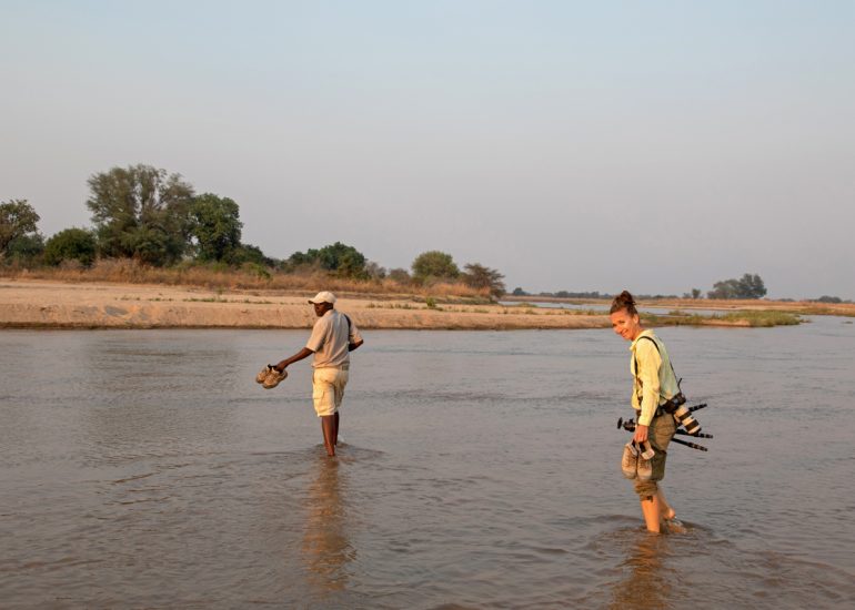 Nach der langen Anreise über Mfuwe, Nsefu und Luambe tut ein bisschen Bewegung ganz gut. Im North Luangwa Nationalpark ist man hauptsächlich zu Fuß unterwegs. Es gibt nur ein sehr begrenztes Wegenetz rund um den Luangwa und seine Nebenflüsse und das Gelände rings um den ganzjährig Wasser führenden Mwaleshi River ist relativ offen, so dass es sich perfekt für Walking Safaris eignet.