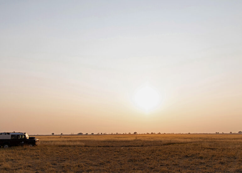 Das Rhino Vlei ist eine dieser Senken und beherbergt ein Meer aus Gras, das hier gefühlt bis zum Horizont reicht. Das kleine Wasserloch im Rhino Vlei sichert den Wildtieren auch in der Trockenzeit Wasserzugang und durch die Entfernung zum Mababe Gate und Savuti Headquarter ist man hier mit Gras, Wind und einer Schar von Wildtieren fast alleine. Morgens und spät nachmittags ist es absolut still. Die tief stehende Sonne lässt das Gras in allen möglichen Gelbtönen schimmern und irgendwo lugt immer ein Kopf aus den Grashalmen.