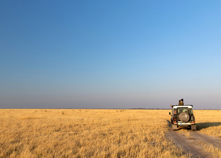 Die holprige Anfahrt verstellt einem leider den Blick für Savutis Landschaften. Hier wechseln sich trockene Sumpflandschaften in der Savuti Marsh mit großen Dolomithügeln in den Gubatsa Hills oder dichte Mopanewälder mit endloser Weite in den Senken der Mababe Depression ab.