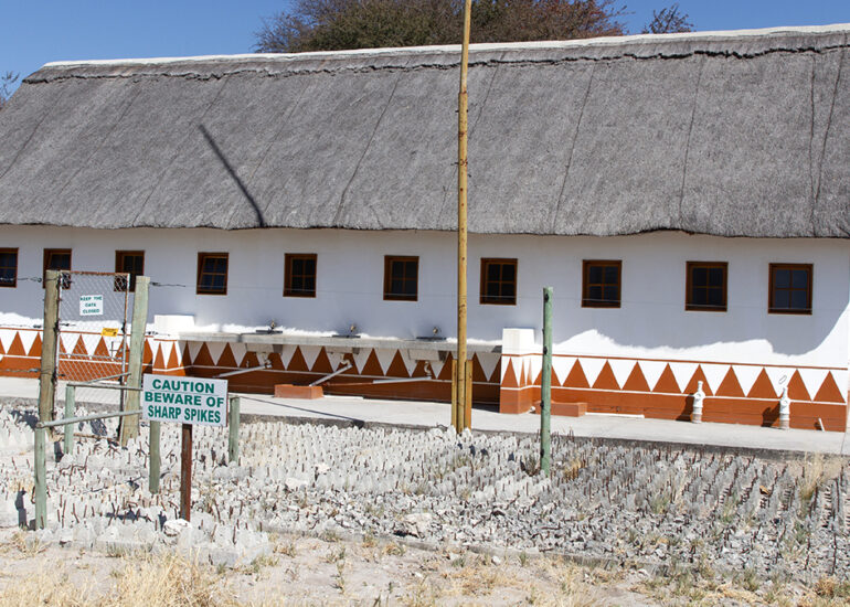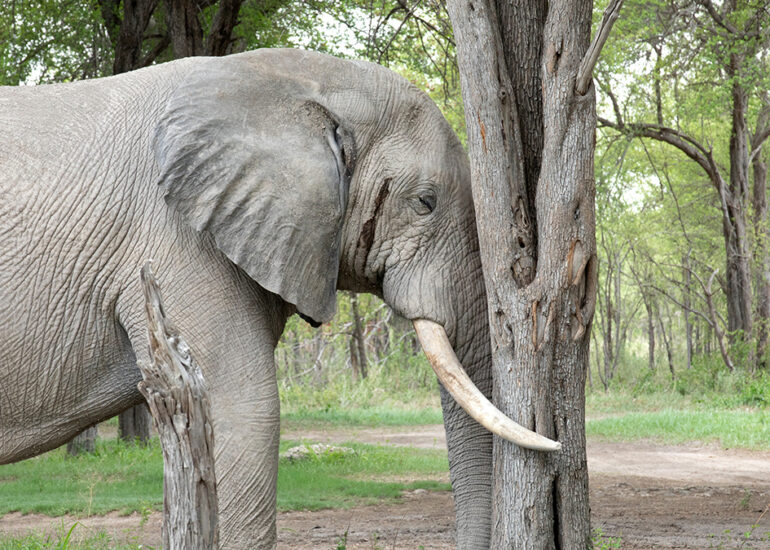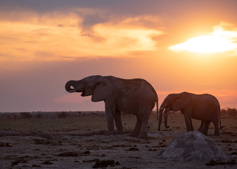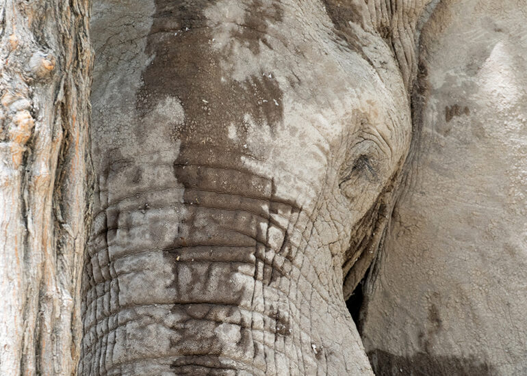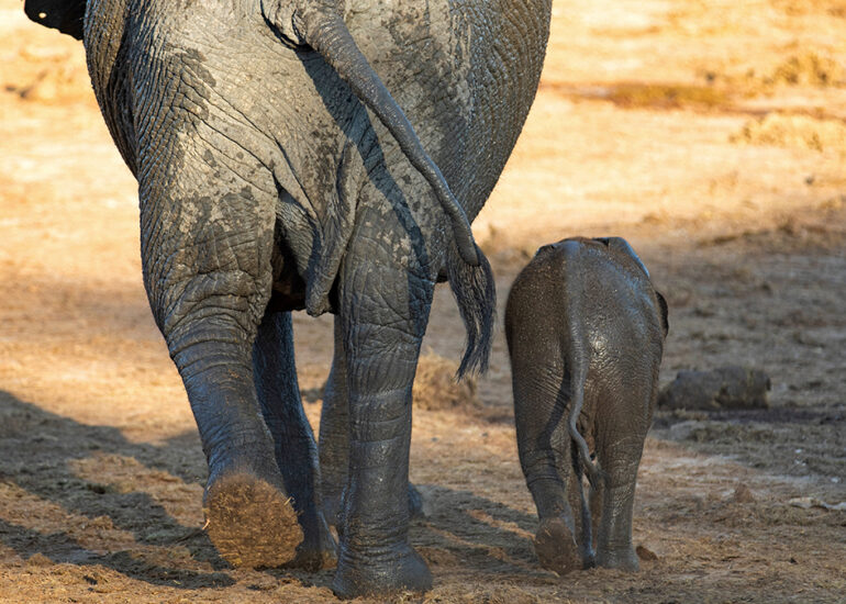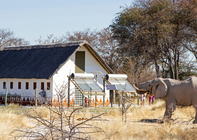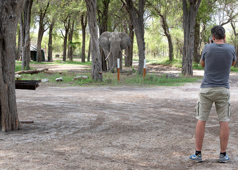Wildtieren kommt man in Botswana näher als anderswo und das Wildniserlebnis ist hier ein ursprünglicheres als in anderen Safaridestinationen - keine Menschenmassen, keine eingezäunten Campsites, keine beleuchteten Wasserstellen, kein Strom oder Handyempfang. Und so teilt man sich die Natur mit jede Menge Wildtieren. Camping ist hier ein echtes Erlebnis. So beispielsweise im South Camp, einer von nur zwei Campsites im Nxai Pan Nationalpark. Das Stück Fleisch vom Grill teilt man sich hier mit diebischen Schakalen und den Camping Spot mit Elefanten. An die 10 ausgewachsene Tiere laufen jetzt in der heißen Jahreszeit täglich über die Campsite. Das kann ein richtiger Schocker sein, denn die grauen „Geister“ sind so leise, dass man sie manchmal erst bemerkt, wenn sie plötzlich neben einem stehen. Die Elis sind in der Hitze nicht nur scharf auf den Schatten der großen Mopanebäume, sondern auch auf das Abwasser der Ablution Blocks. Dieser ist zwar mit einer Art „Spikes“ eigentlich „elefantensicher“, aber die klugen Tiere haben die Betonabdeckung der Abwasserrohre verschoben. Und wann immer jemand spülen oder duschen geht, saugen die Elis genüsslich das Abwasser aus zwei Metern Tiefe nach oben.