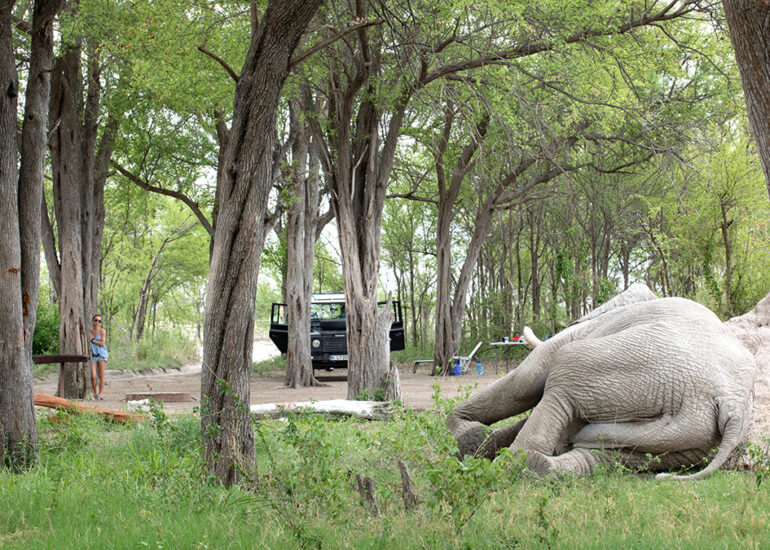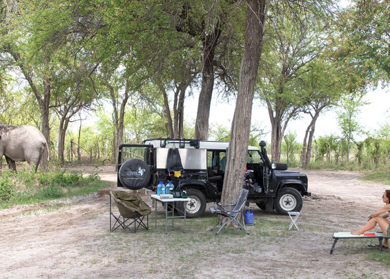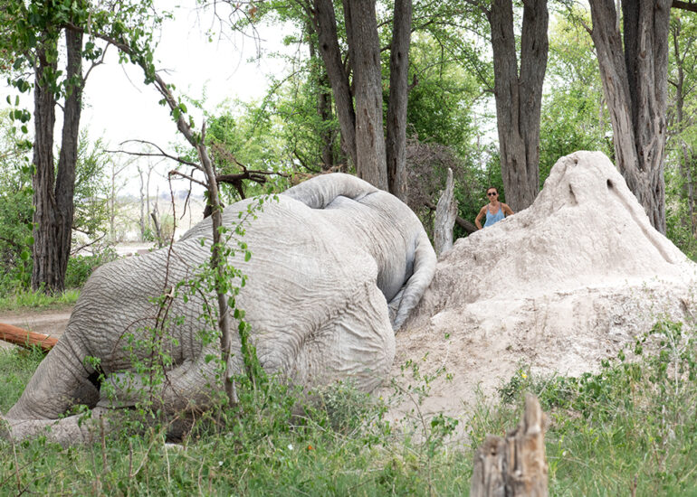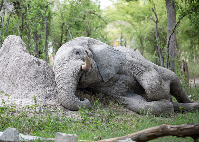Es sind überwiegend Bullen, die sich selbstbewusst ihren Weg zwischen Zelt und Landy bahnen und dabei kaum Notiz von uns nehmen. König der Entspannung und bei den Rangern besonders beliebt ist Bulle „Boris“, der den Termitenhügel im Camp gerne als Kopfkissen nutzt und mitten auf der Campsite Nickerchen macht.