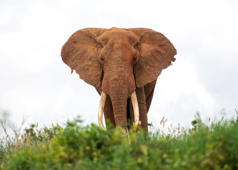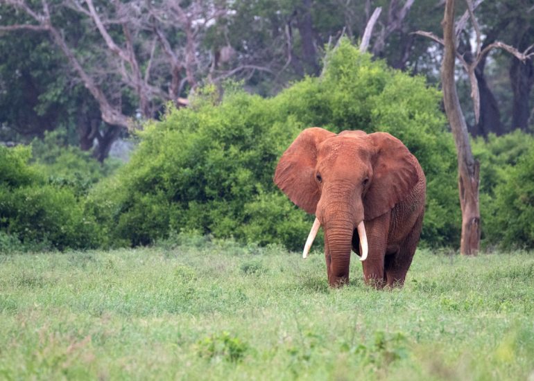 Typisch für den Tsavo Nationalpark sind seine roten Elefanten. Dahinter steckt keine genetische Laune der Natur, sondern Tsavos eisenoxidhaltige rote Erde. Um sich vor Parasiten und der starken Sonneneinstrahlung zu schützen, legen die sanften Riesen sich eine Art Ganzkörper-Make-up zu. Wir finden, das „Rouge“ steht ihnen ausgezeichnet :-).